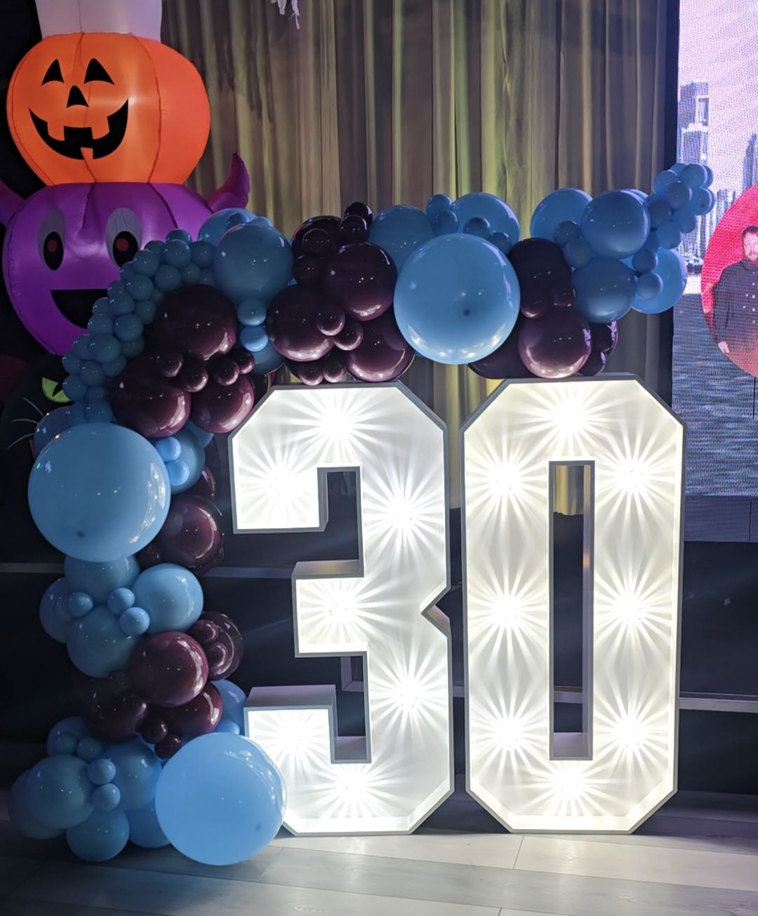 Our stunning LED numbers are available to hire, with or without bespoke balloon displays.
